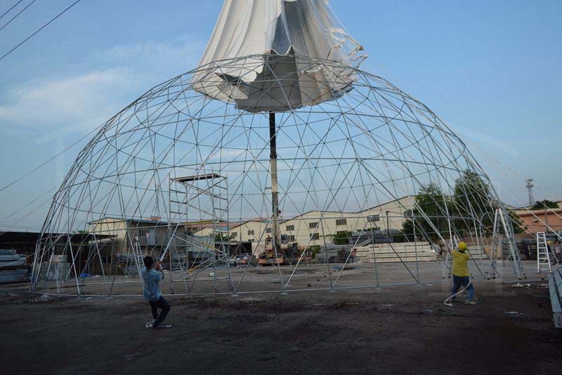 However, for the dome tent with a diameter of 10 meters or more, a crane will be used, and professional constructors will be required to build it on the site, which increases the number of constructors and all kinds of demands in the construction, which are generally determined according to the actual situation on the site.